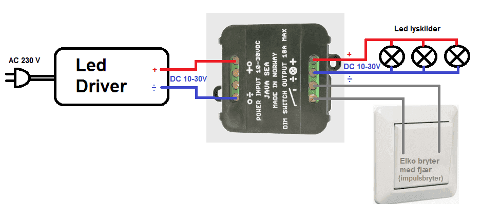12-24 Volt som kan styres av 1 pol bryter med impulsfjær.